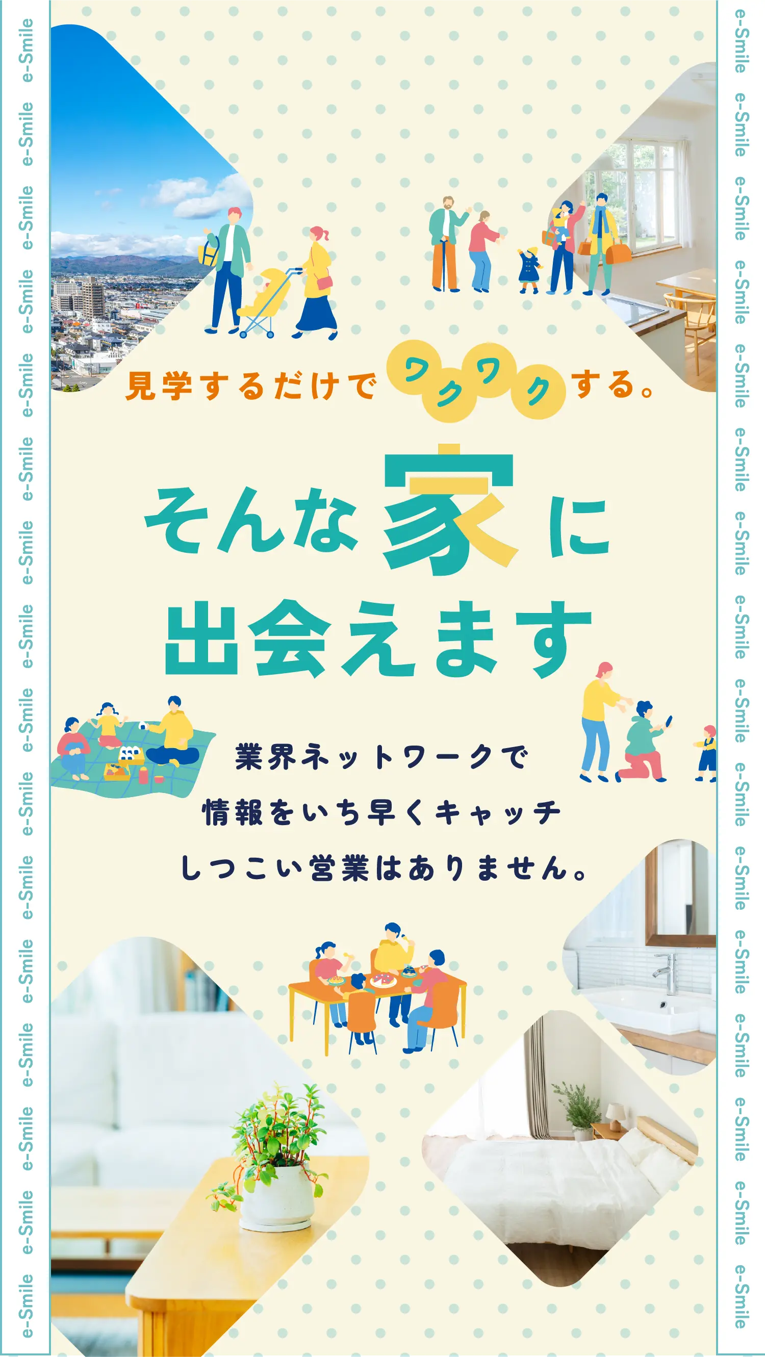イースマイルは「売り込みをしない不動産屋さん」です。無理な営業やしつこい電話連絡は一切ありません。お客様に必要な情報提供に徹しているので、安心してマイホーム探しを進められます。
